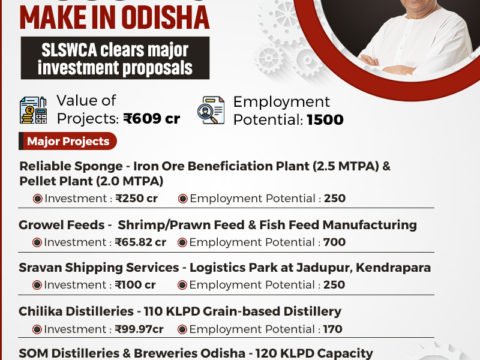 The Odisha State Level Single Window Clearance Authority (SLSWCA) has approved five investment proposals worth Rs 609 Cr which can…